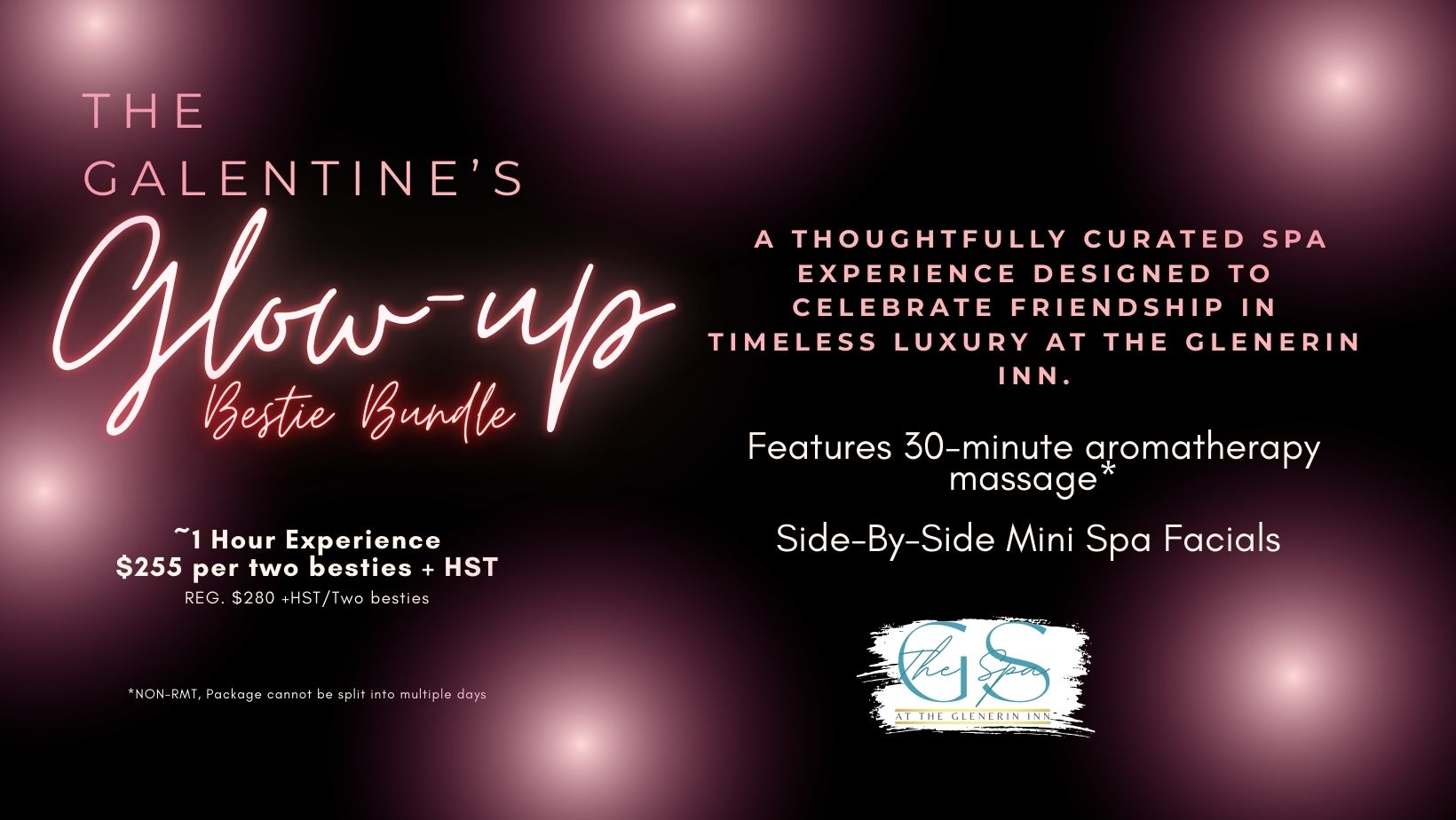 Celebrate friendship in timeless luxury with our Galentine’s Glow-Up Bestie Bundle, the perfect Galentine’s Day spa package. Ideal for best friends, sisters, or anyone who believes self-care is better shared, this thoughtfully curated spa experience invites you to relax side by side at The Glenerin Inn.